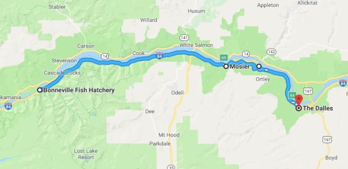 map to the Dalles