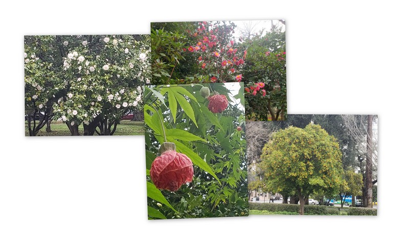 We walk through groves of camellias that have grown to the size of small trees as well as a couple of orange trees bearing fruit to visit the many memorials and monuments.