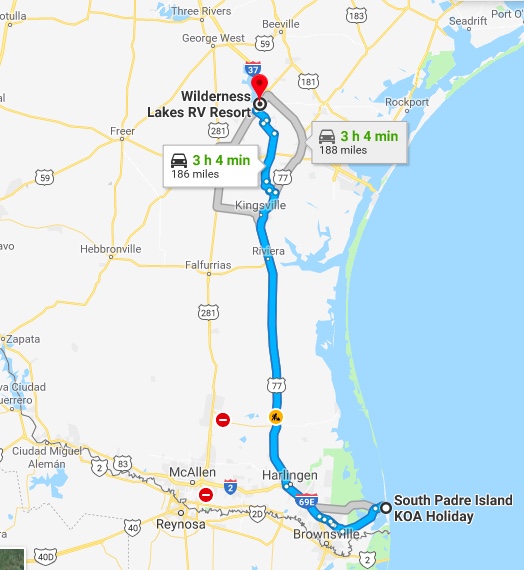 Our route from Mathis to South Padre Island was mostly uneventful except our friend The Wind decided to join us once again. The majority of the time it was following at various angles which wasn’t too bad but as usual we had to change course on a port tack, making the force of the wind much more prevalent. Driving a big box with 22 mph winds and 30 mph gusts trying to upset the turtle ain’t fun.