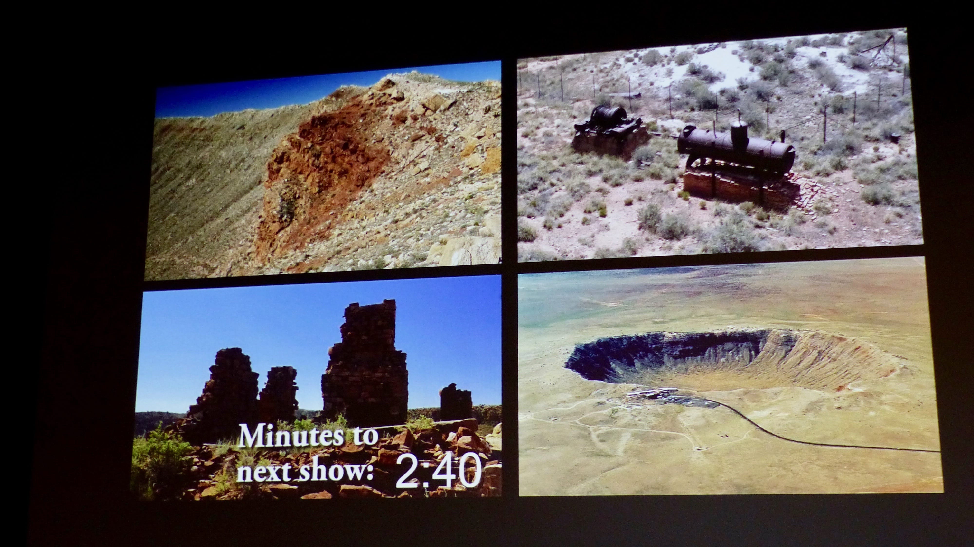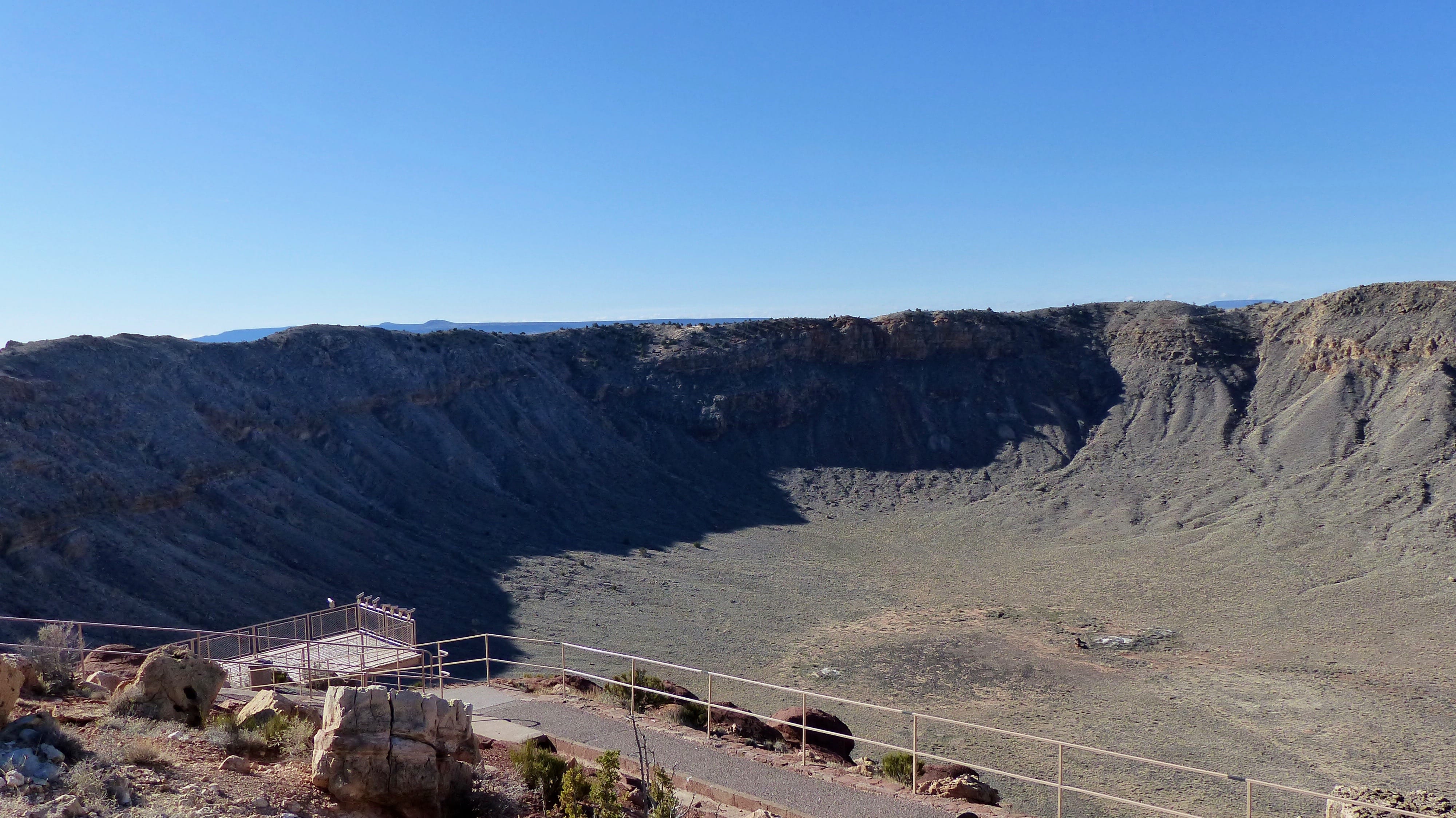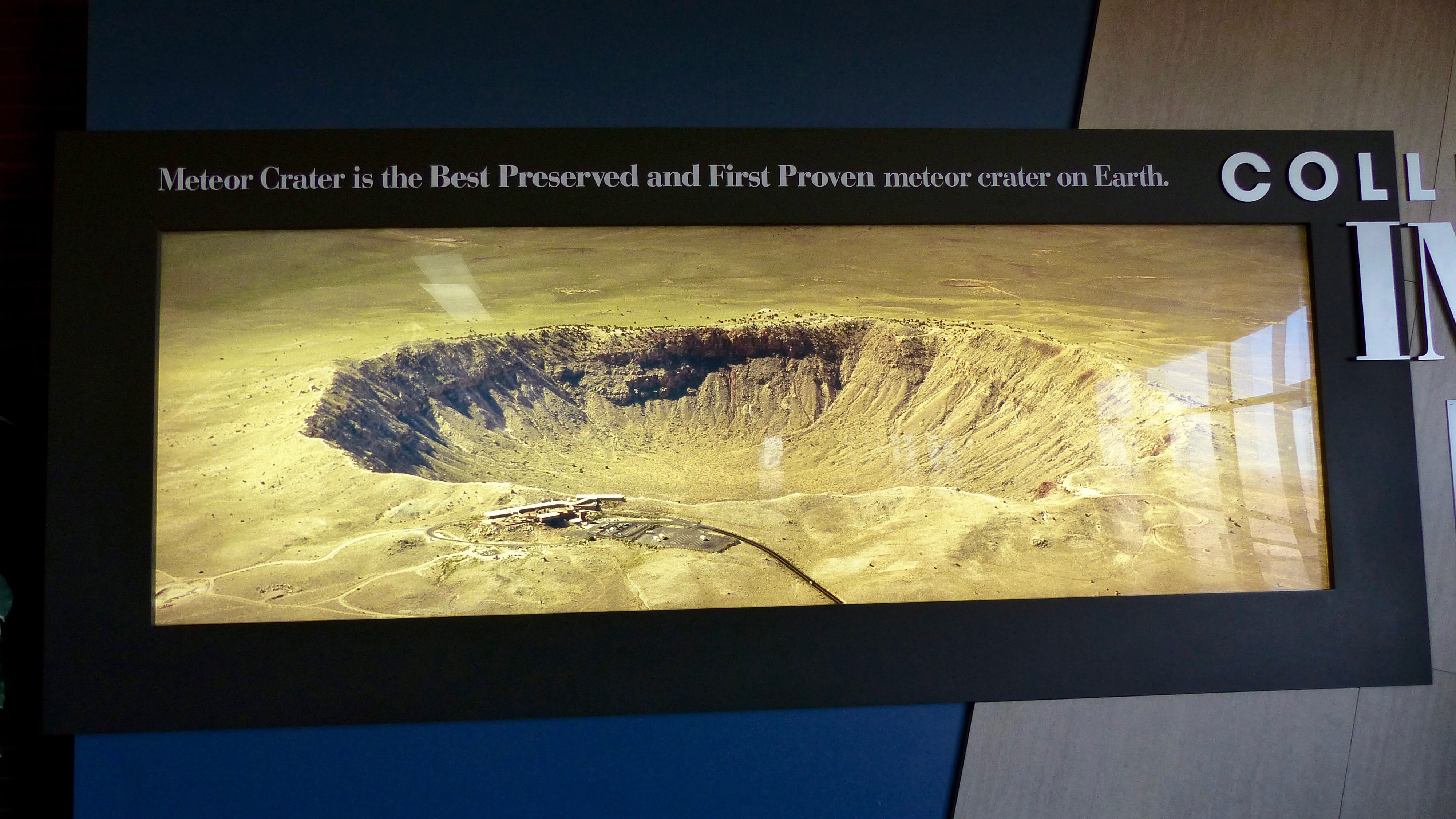 Yesterday we went to the Meteor Crater blasted out by a meteor strike 50,000 years ago. Man, that hole in the ground is big! It’s a mile walk around its perimeter. The blast debris surrounding it looks like the normal terrain so one would never know the crater is there unless they walked up to the top- and looked way down to the bottom. It is on the National Register of Historic Places but is privately owned, the same owner as the Meteor Crater RV/gas station/mini mart where we stayed.