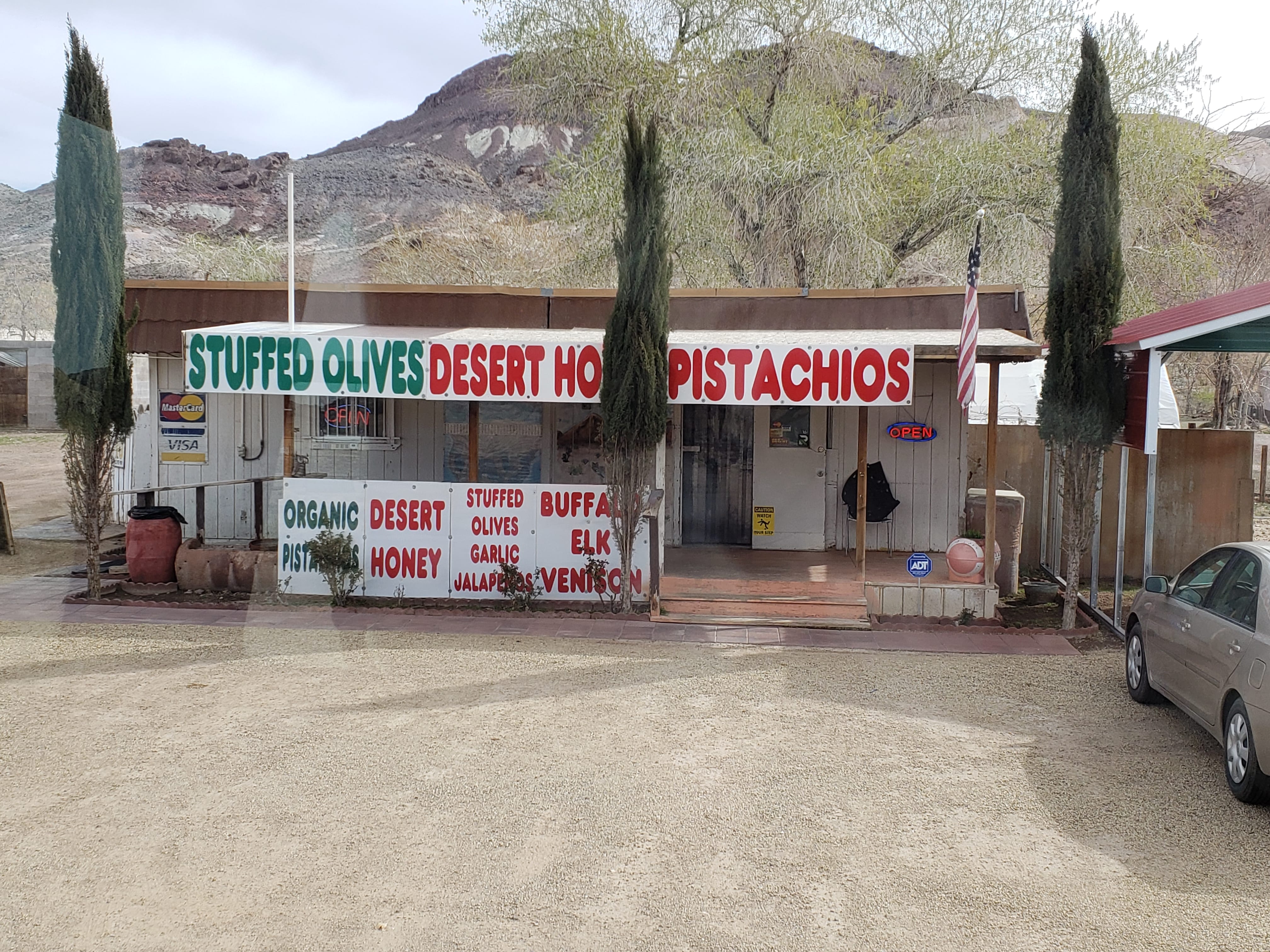 The last leg of our trip brought us through some very interesting country. It’s still over 400 miles to our home so we stopped in Hawthorne overnight. On the way from Pahrump to Hawthorne we stopped in Beatty (1000 souls) at an interesting store. The proprietor makes his own toffee covered nuts and sells honey. Haven’t sampled the honey yet but the butter toffee almonds were great!