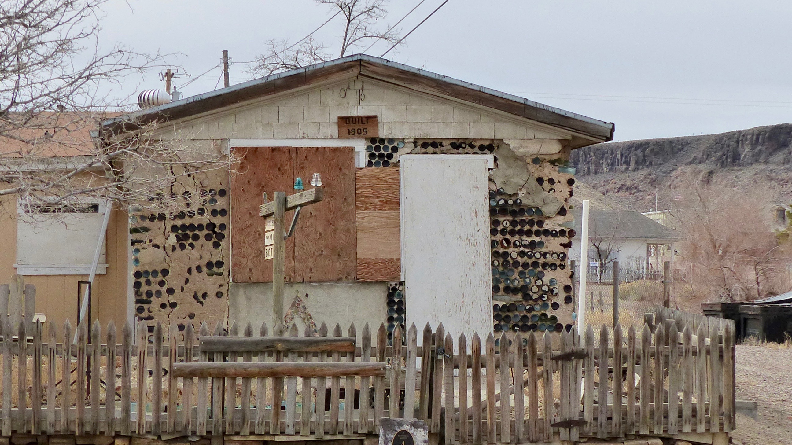 Rhyolite is one of those boom to bust gold towns which grew rapidly near the Montgomery Shosone Mine. It’s located about four miles west of Beatty near the Gold Well Open Air Museum. We didn’t visit either one of those places as we were dialed in for home. If we are ever back in this area we sure will!