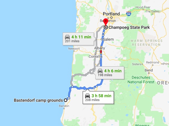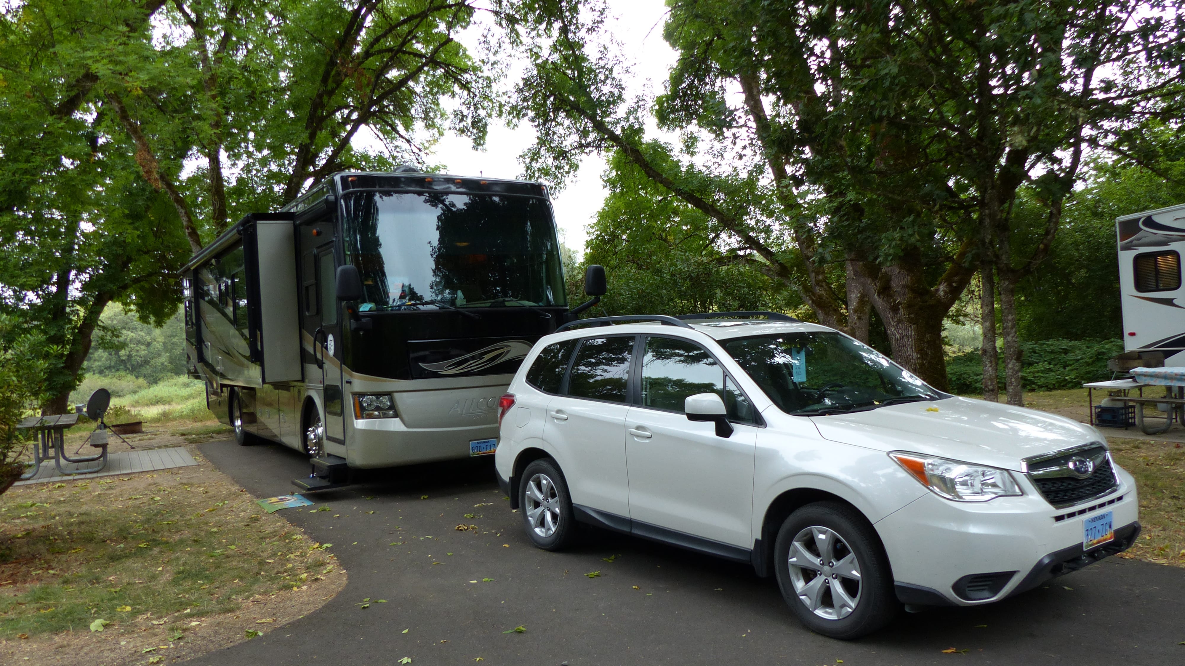 Planning our route from Bastendorff Camp Ground in Coos Bay to Champoeg State Park located a few miles off of I-5 and halfway between Salem and Portland appeared to be easy. We could go up the coast and go inland from Newport or Florence- or could we? I stumbled on to some information that indicated that the Suislaw Bridge in Florence and the Yaquina Bay Bridge in Newport have had 20,000 pound vehicle limits for several years now. To cross them with our motorhome we’d have to enlist flaggers to block traffic at each end of the bridge and drive slowly down the center. That was not going to happen. I read that Oregon 38 was a good route to take inland so that’s the way we went.