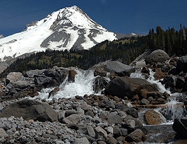 Heading down the southeast shoulder of Mt. Hood we come to a large barren rock and boulder strewn area reminiscent of glacial activity- and it is! The White River Glacier has left it’s mark on the mountain. This is also the headwaters of the White River.