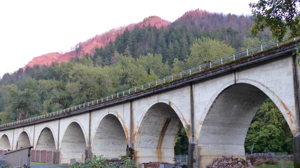Host Site #2 is our home for two months. It’s located away from the public areas of the hatchery behind the fish ladder, holding pond and channels where the salmon enter the hatchery. Out our right side windows not 35′ away is Tanner Creek. The fish come in from the ocean via the Columbia River and turn right into the mouth of Tanner Creek. They are prevented from continuing up the creek as far as our location by an electrified “fence”. Their desire to continue to the spawning grounds is what brings them here.