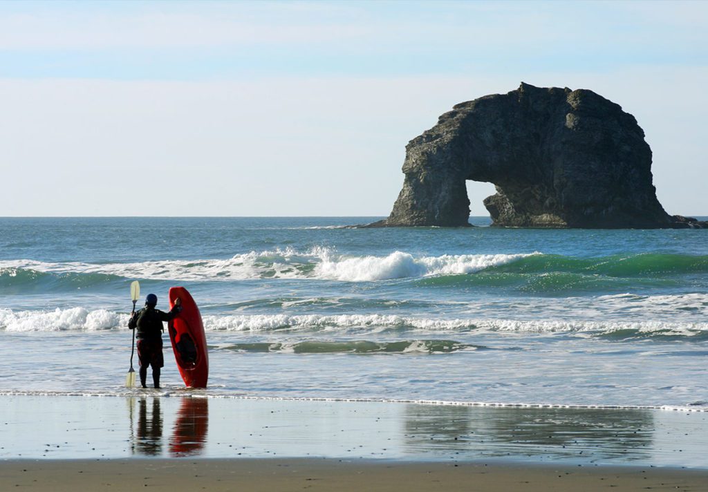 William Clark, one of the leaders of the Lewis and Clark Expedition, journeyed to Cannon Beach in early 1805. The expedition was wintering at Fort Clatsop, roughly 20 miles (32 km) to the north near the mouth of the Columbia River. In December 1805, two members of the expedition returned to camp with blubber from a whale that had beached several miles south, near the mouth of Ecola Creek. Clark later explored the region himself. From a spot near the western cliffs of the headland he saw “…the grandest and most pleasing prospects which my eyes ever surveyed, in front of a boundless Ocean…” That viewpoint, later dubbed “Clark’s Point of View,” can be accessed by a hiking trail from Indian Beach in Ecola State Park.
