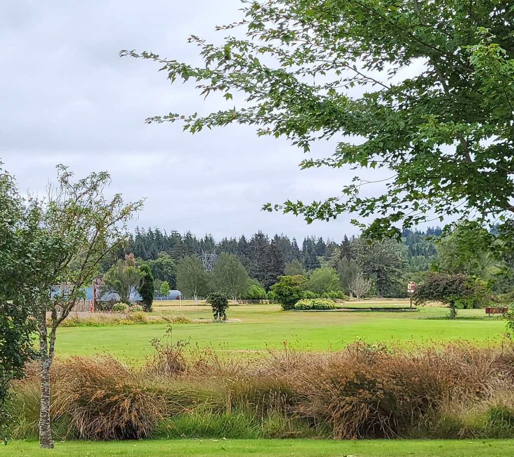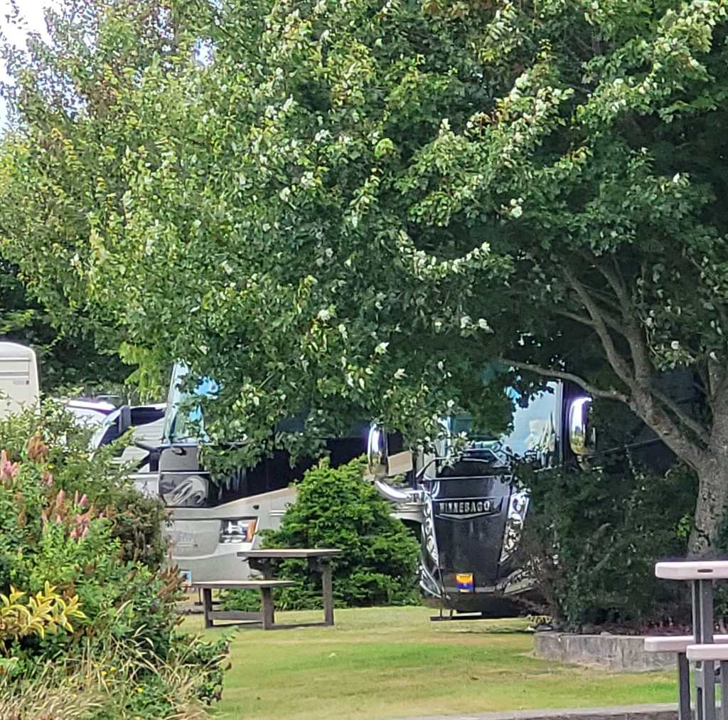 Our campsite here at Lewis and Clark Golf and RV Park was wonderful. Nice and wide with shrubbery in between sites. Ours was a pull in site meaning we had a front row view of the golf course.