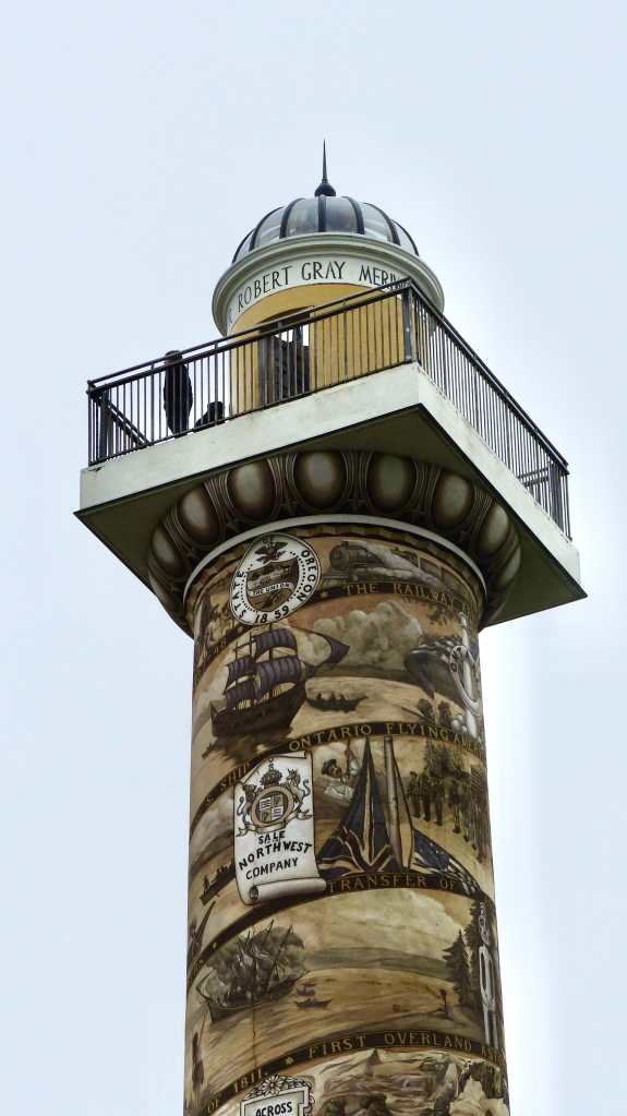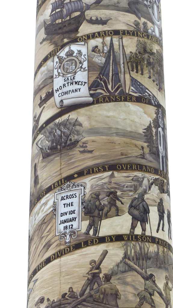Patterned after the Trajan Column in Rome (and Place Vendôme Column in Paris), the Astoria Column was dedicated on July 22, 1926. The spiral sgraffito frieze on the exterior of the structure has a width of nearly seven feet (2.1 m) and a length of 525 feet. Painted by Electus Litchfield and Atilo Pusturla, the mural shows 14 significant events in the early history of Oregon, as well as 18 scenes from the history of the region, including Captain Gray’s discovery of the Columbia River in 1792 and the Lewis and Clark Expedition.