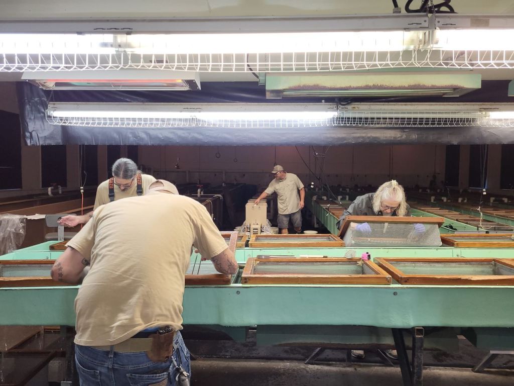 As our days come to an end volunteering here at the Bonneville Fish Hatchery the work continues. We are finally getting some rain and a little wind which causes leaves to fall. Many leaves but the leaf blizzard is just beginning. More leaves falling creates more of a mess to contend with to keep the grounds neat and tidy. Lots of visitors coming by private auto, school bus or tour bus means our supply of brochures and handouts need constant replenishing. Many of those handouts are reproduced in-house where Jil and Connie run the copy machine almost on a daily basis.