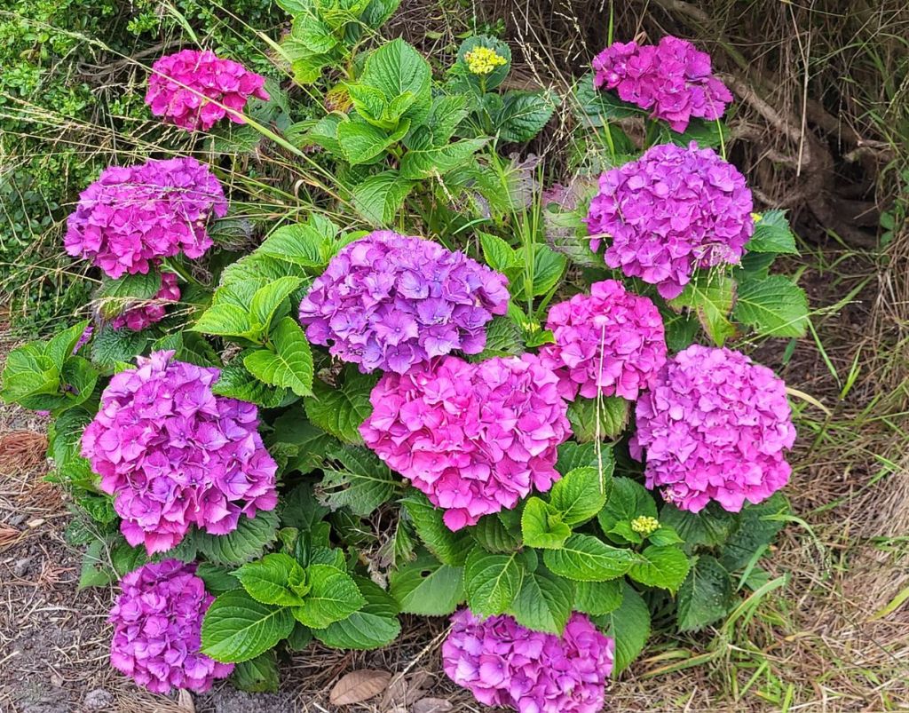 We chance it and all is good. Pomo RV Park and Campground is just south of downtown Fort Bragg just past Noyo Harbor. It’s a little tight maneuvering inside the park. The campsites for the most part are separated by thick vegetation offering great privacy. A big grassy area is near the center of the park. Lots of flowering plants are eye candy including hydrangea, lilac, sweet peas, roses, nasturtium, pine and deciduous trees making for very colorful grounds. We like it here!
