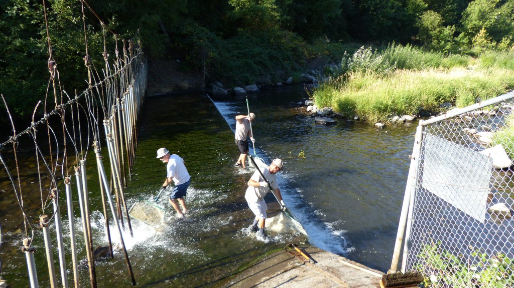 We’ve been volunteering at the hatchery now for three weeks. Weather is highly variable with some days in the high 70’s, some record setting days at 105 degrees! Gads, this is the Pacific Northwest and the high temperatures were 20 degrees higher than at our home in the high desert, Reno.