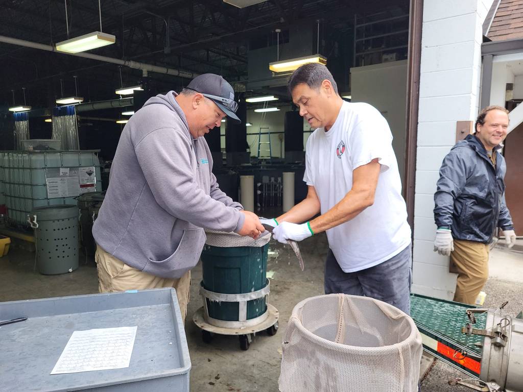 The chinook have been spawned four times in the last two weeks with enough fertilized eggs collected to perpetuate the species. Coho have been sorted and will be spawned some time next month.