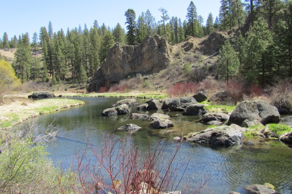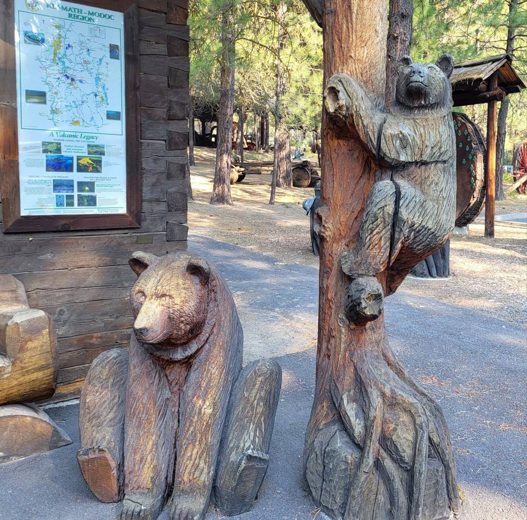 Next day we drove a couple hundred miles to Collier State Park for a two night stay. The 242 fire of 2020 took out 400 acres of ponderosa pine trees. Many of those burned trees are still standing with many miraculously surviving. The campground is nice for walking our mutzos as there is lots of forest to explore as well as the Williamson River that runs right behind our campsite.