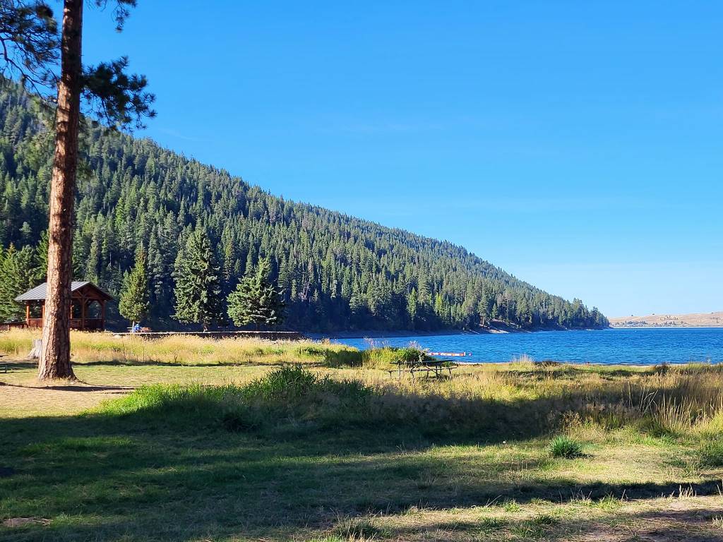 Wallowa Lake is 3.4 miles long and not as wide. I sits in a hollow backed by beautiful mountain peaks. The scene of the lake and peaks is beautiful. The State Park lies at the southernmost end of the lake with those peaks at its back. Ther park is well laid out with acres of open areas beneath the pines with picnic areas integrated in those areas. There is a stream where Kokanee salmon spawn. A marina rounds out the park where a large parking lot is provided for all those spring and summer fishermen. We particularly enjoyed the large open areas as we could walk Buster and not worry about him reacting to other dogs. I’m not sure we’d ever come back to Wallowa Lake again but it was sure worth the side trip to visit the lake and parts Wallowa County Oregon.