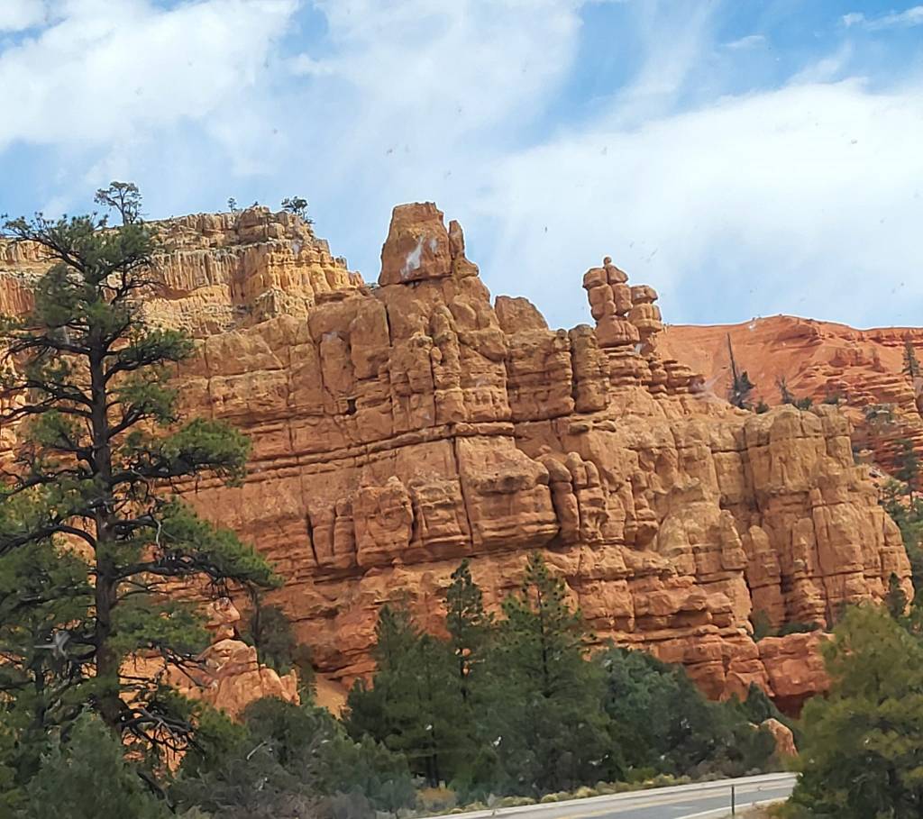 We stayed at Ruby’s very large RV Park choosing an end site in their newer section.The sites are huge in this part of the park and we could walk our mutzos in native vegetation away from other dogs. The park is only 3 miles from Bryce Canyon NP entrance station so we pack up the mutzos and head to the park. We were here shortly after 911 some 23 years ago. My how thngs have changed! There’s three entrance booths of which two are open. It’s 0900 hours and we are about 6 cars back in the line to pay. Never have I seen a line to get into Bryce Canyon NP!