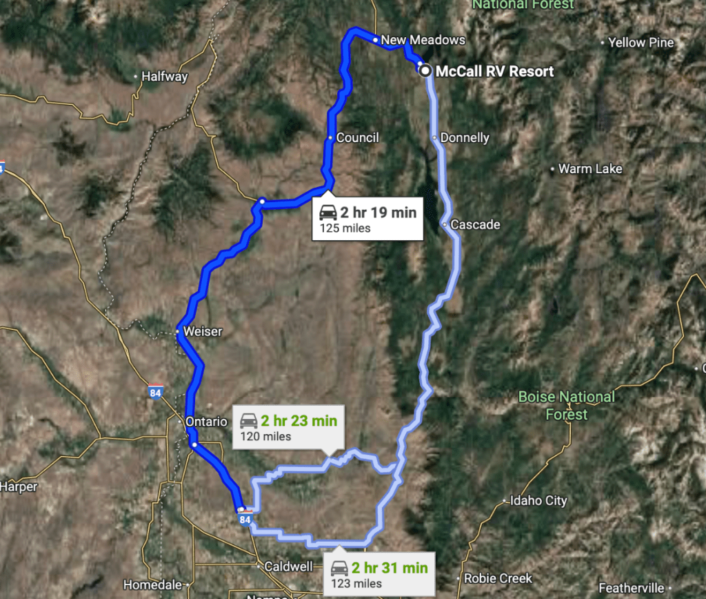 We love McCall but it has that one glaring negative. It’s a very popular place summer and winter. A lot of folks frequent McCall since it is only 2 hours from Boise. In fact the RV park shows it’s proximity as it rents sites by the month and those folks bring all their toys- four wheelers for trail riding, boats, kayaks canoes, electric bikes- all piled up at their site. But man! The traffic!