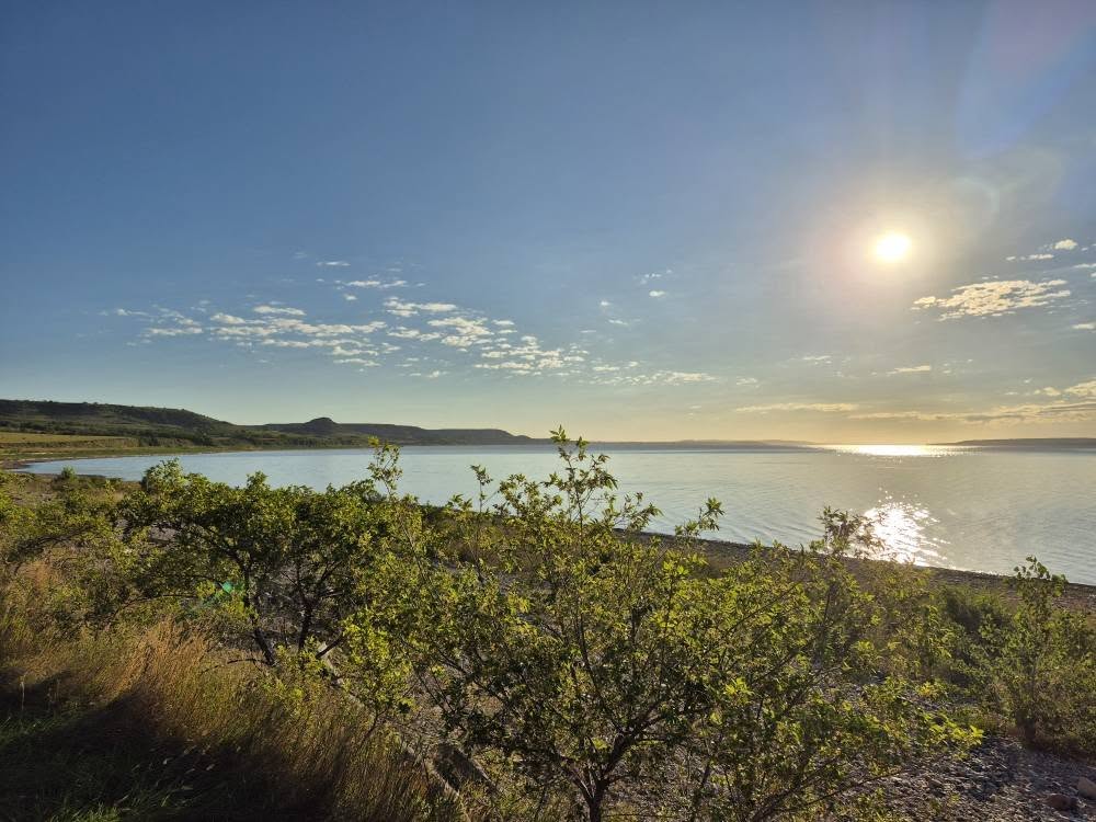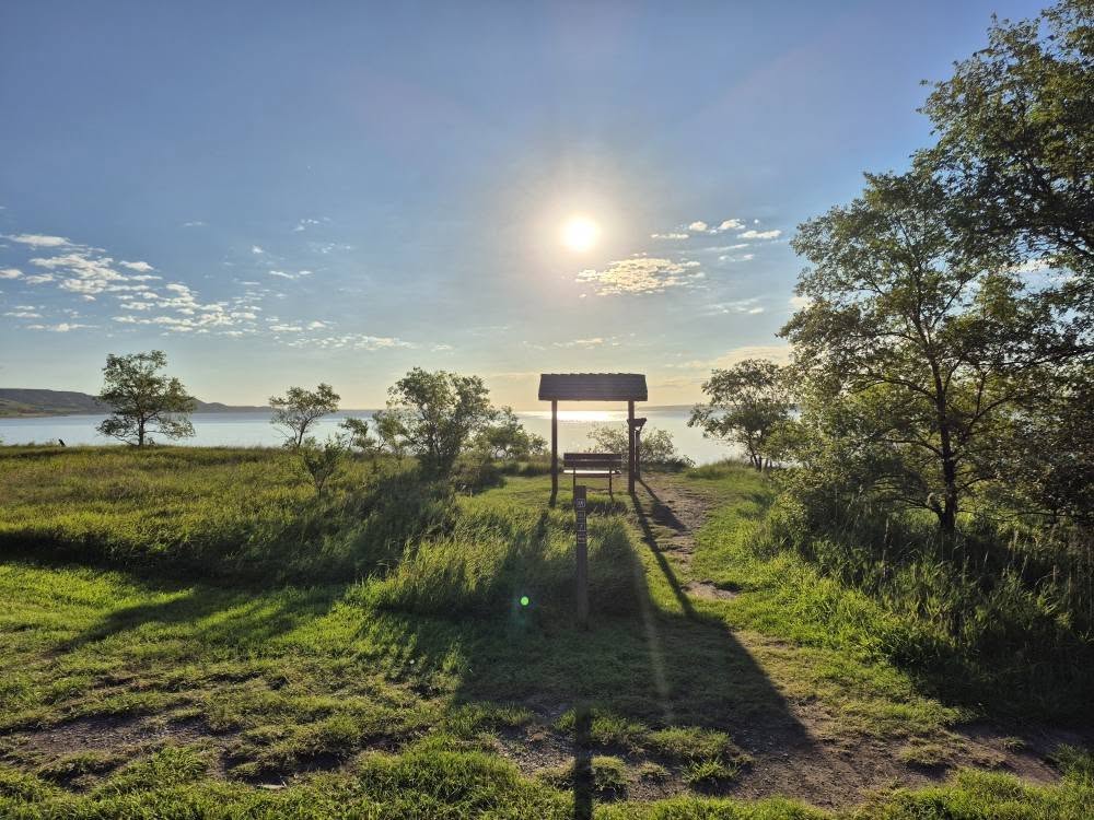 We travel south and east of Williston about 20 miles to Lewis and Clark State Park located on the shores of Lake Sakakawea, the third largest man made lake in the United States. We’ve been here once before and this time the park is more beautiful than the first. The sites are nicely spaced in amongst trees. There is a large play area for kids and a huge fenced area to let your mutzos romp in. The views of the lake are amazing. There is a marina for the boat enthusiasts. The only thing that keeps its rating below a 10 is there is no sewer at individual sites. It does have side by side dump station so two rigs can be serviced at once. So we’ll rate the park in the 9.95/9.6ish range. It’s a beauty!