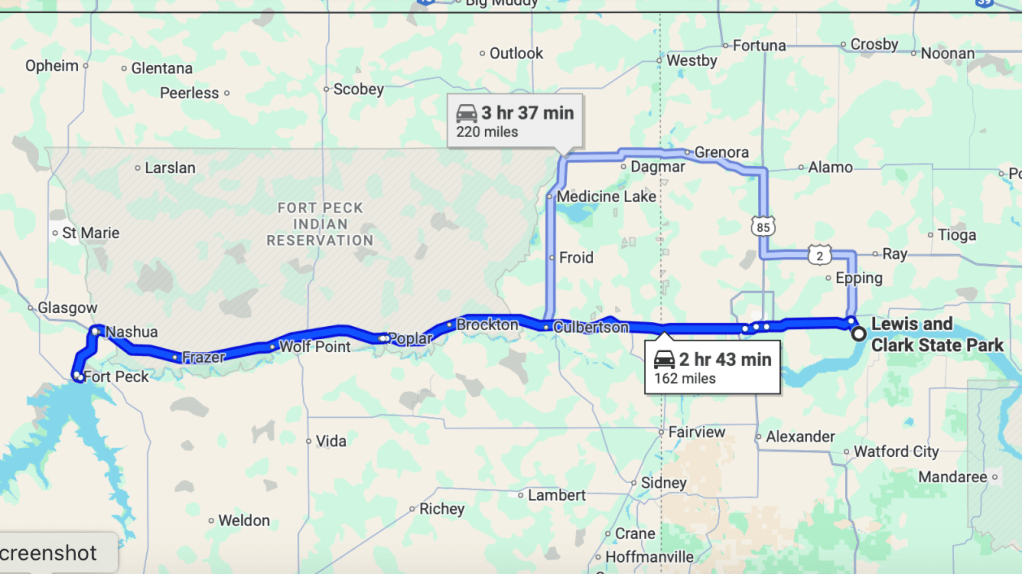 I was hoping to visit the North Unit of Theodore Roosevelt National Park. I wanted to stay one night there. It’s not large so one day should be adequate. There is only dry camping but the place looks worth investigating. But not at the expense of having a mechanical failure away from the main highway 80 miles to the north. So where are we to go? How about a place we’ve been before? How about Lewis and Clark State Park? Sure! Lets go!