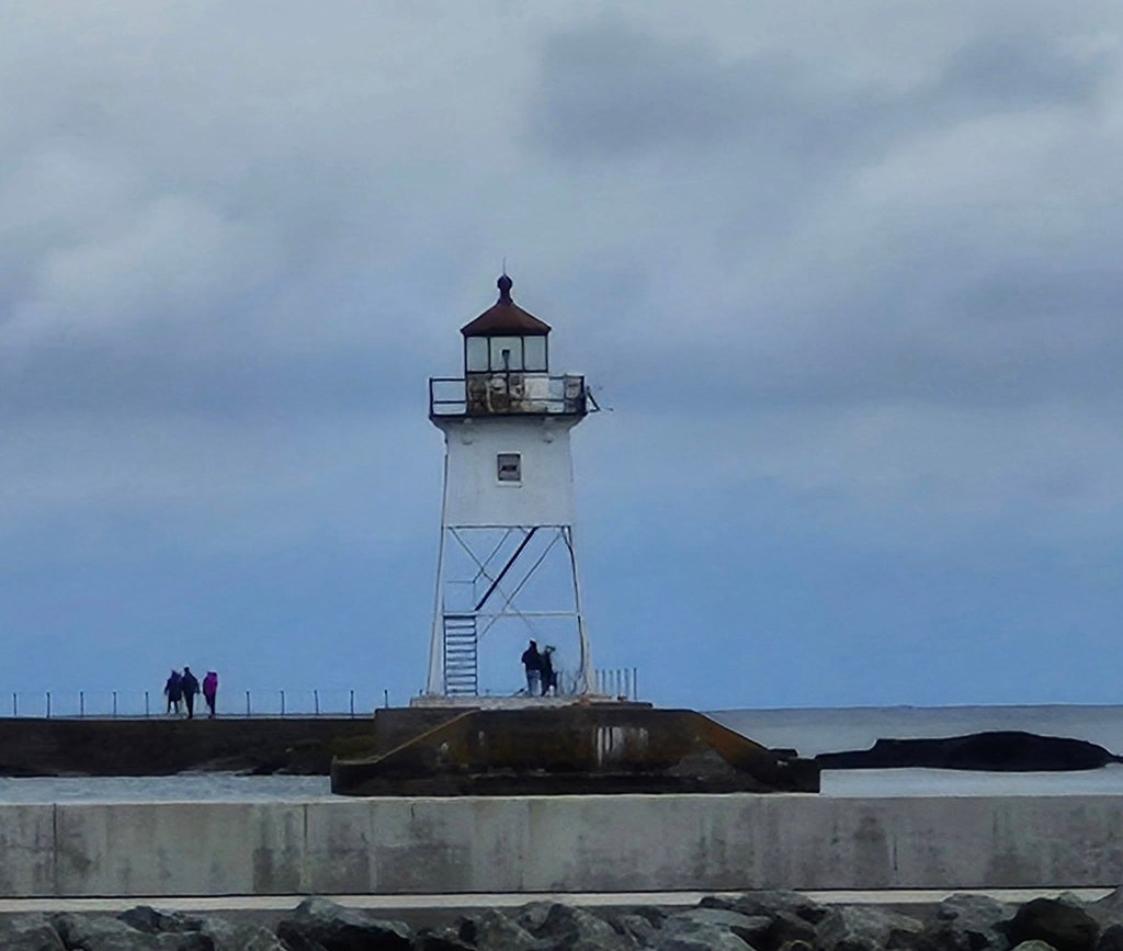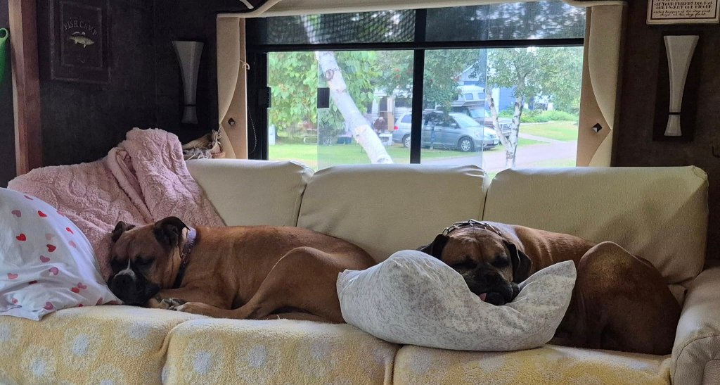 We were able to snag a few nights in Grand Marais (1306 souls). The town is a tourist destination, has a small boat marina and a lighthouse near the entrance to the harbor. The nice RV park is municipally owned. Our RV site is on the far south end of the park. Behind some tall bushes is a clearing with a big tent in it.