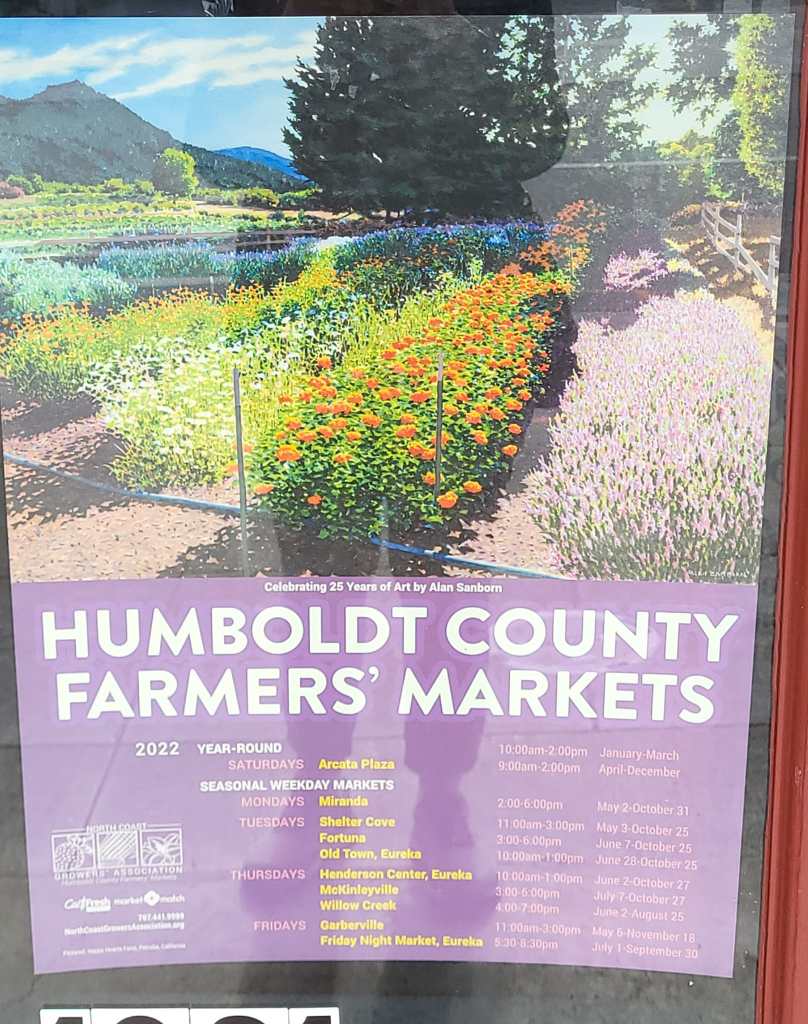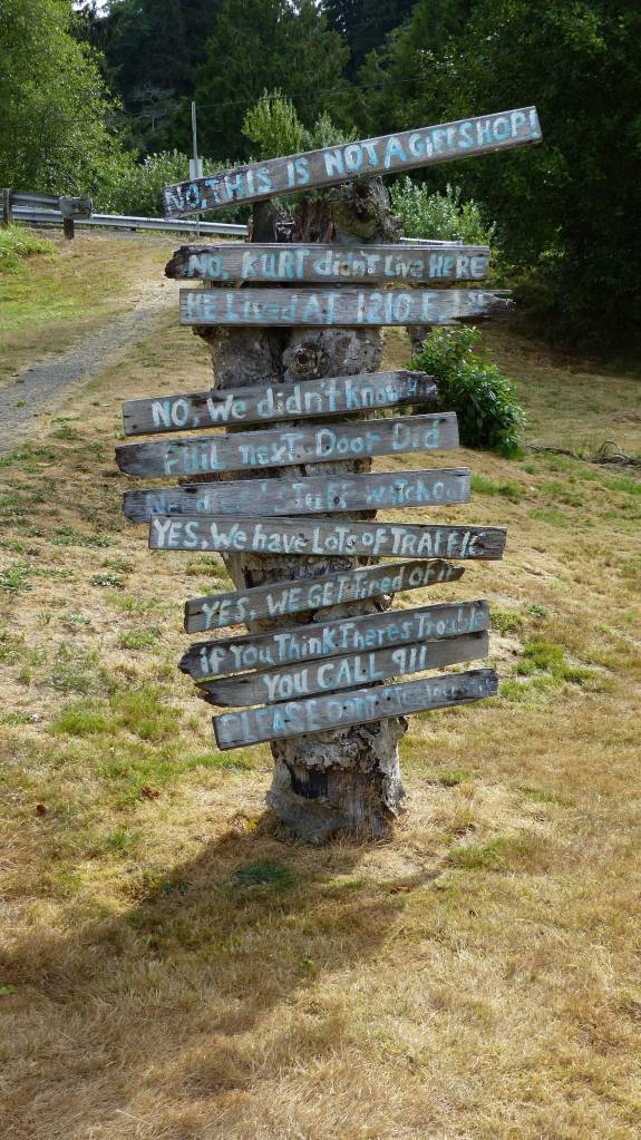 We went into downtown Arcata. The place is nicely layed out around a square but the first thing we noticed was not how nice the town looks but all the homeless folks- many of them staggering around as if drugged. What a pity! We walked around for a while noticing signs in storefront announcing weird things that were meaningless to us. We then went to a Safeway store and bought groceries.
