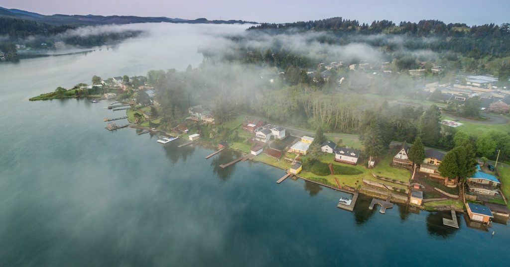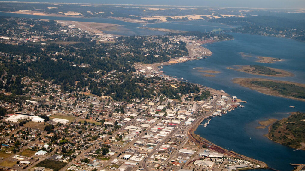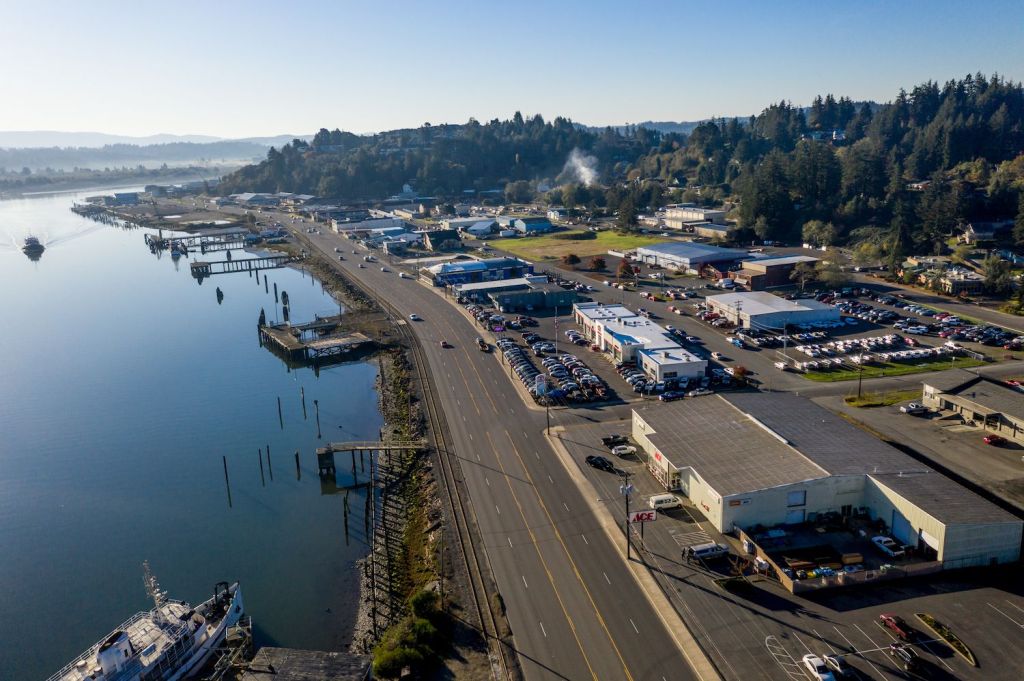 Adjacent to the town, the Coquille River empties into the Pacific Ocean. The river extends inland a great distance and was a natural link to the virgin stands of timber in the area, but the bar at the mouth of the river, formed by the interaction of the river and ocean, was a major obstacle for ships entering the river. At times, only a few feet of water would cover the bar, but vessels still attempted to navigate the river in hopes of reaping the rewards that lay upstream. In 1880, Congress passed a bill funding the construction of a jetty on the south side of the river’s entrance that created a deep channel, resulting in a rapid rise in the number of ships entering the river.