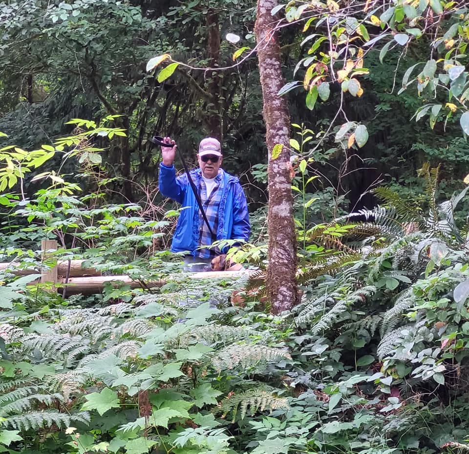 Our gig was up at the end of two weeks but we volunteered to stay for a while longer- until our new fearless leader ranger dude wanted us to remove all of the scotch broom on a hillside by just cutting it off. We told him that it would grow back from the roots and the effort would be wasted unless the root was removed. He wasn’t convinced and turned us loose with pruners. We decided that digging tools were in order, went to the tool shack and found more appropriate tools to remove the broom. Spent four hours digging up plants by their roots clearing maybe a 150 square feet of hillside with several thousand more waiting for us.. Decided that the effort was an exercise in frivolity since acres of the stuff grew on the hill and unvolunteered ourselves of the task since our official volunteer gig had ended, turned in our gear and left.