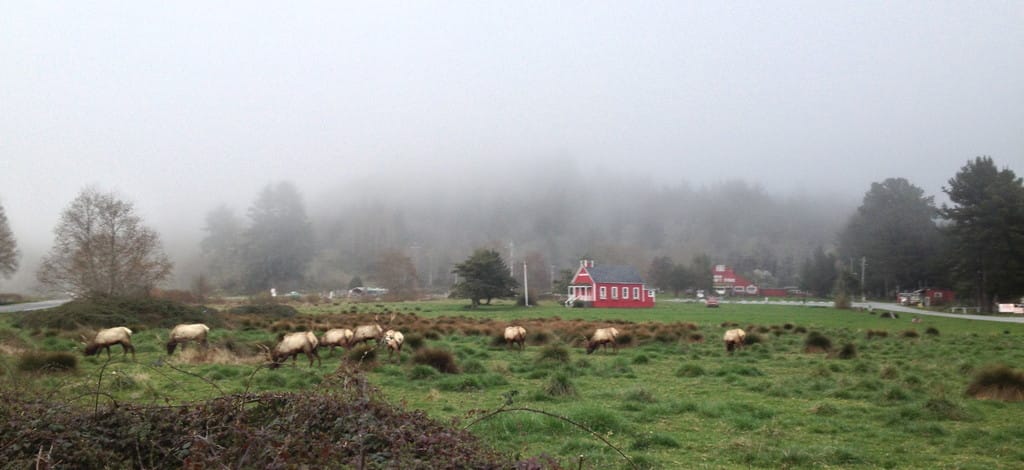 We pass through more redwood groves on US101. The National Park Service distinguishes the coastal redwoods from the giant sequoia thusly: The giant sequoia, a close relative of the redwood live on the western slopes of the Sierra Nevada in Central California at 4000 to 8000 feet for 250 miles. The redwood grows near the Pacific Ocean along the Northern California Coast for about 450 miles starting around Big Sur/Monterrey to the south and 15 miles wide. The giant sequoia is the largest tree in the world (General Sherman Tree 275′ tall, 36′ in diameter) in volume having an immense trunk; the redwood is the world’s tallest tree (the Hyperion Tree 380’9.7″) and has a slender trunk by comparison. The bark of the giant sequoia is bright reddish brown whereas the redwood is a dull chocolate brown.