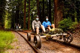 Glass beach is a place known for its colorful glass pieces ground smooth by the action of the ocean. You may ask how did so much glass get on the beach to warrant the name? Ironically, the locals used that beach as a dump dropping trash, bottles, etc. into the ocean there. Most evidence of this questionable habit is gone except for the smoothly ground glass pieces. Also in town attracting tourists is the California Western Railroad, aka, the Skunk Train its nickname by old timers deriving from the fact that “You could smell it coming before you could see it”. Today the Skunk is a great tourist attraction, transporting gleeful passengers through beautiful forest as far as Willits. Also offered are pedal cars fashioned after side cars for the adventurous soul.