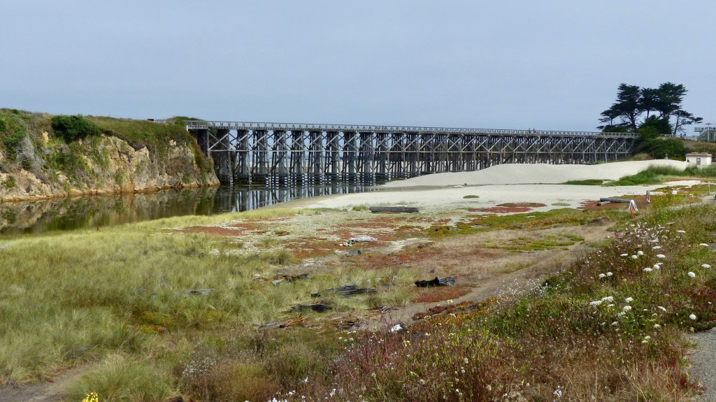 Yesterday we took a little ride through Fort Bragg admiring the old style buildings as we passed through. We proceeded north to McKerricher State Park. The park offers day and picnic areas, a beach, a small lake and a campground. The Union Pacific Haul Road used to run through the park down by the beach as evidenced by the trestle that still exists.