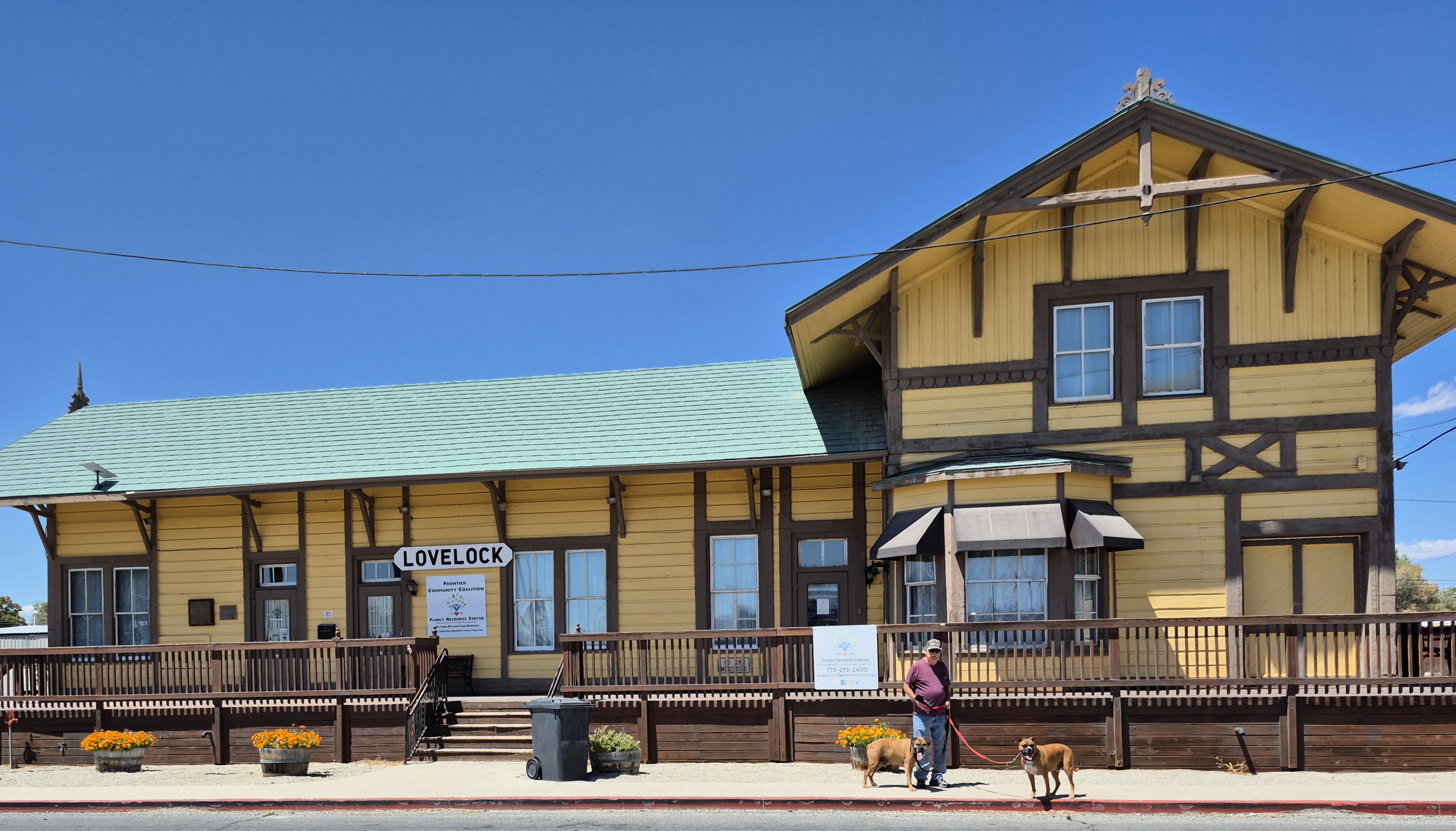 Our destination for a couple of nights is the Iron Horse RV Park in Elko, NV (20,264 souls). We have been to Elko several times but only stopped to stretch our legs. They have a large municipal park that incorporates an events center, an indoor swim center, several ball diamonds and a large shaded grassy area. Best of all- there’s no problem parking big rigs. The Eastern Nevada Museum fronts the park.