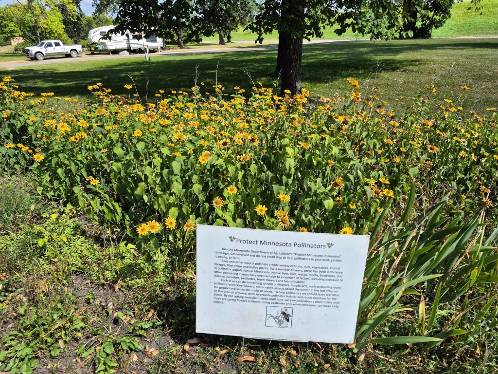 All is good and we pull into Clinton State Park. Jil goes into the office to check in and comes out with a copy of the campground map with a line drawn on it indicating how we are to proceed to our campsite. We muff it because there is a lack of signage indicating which campsites are on each loop. We double back and find our site…… Hmmmm… the utilities are on the wrong side of our rig. I look down the row and some rigs face the same as ours and some face the opposite which puts the utilities on the correct side. No matter, I have enough power cord to reach the electrical pedestal and we don’t need water.