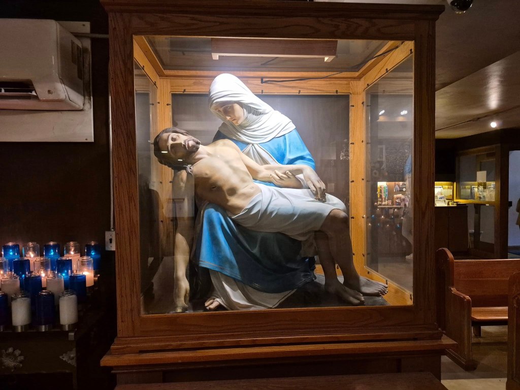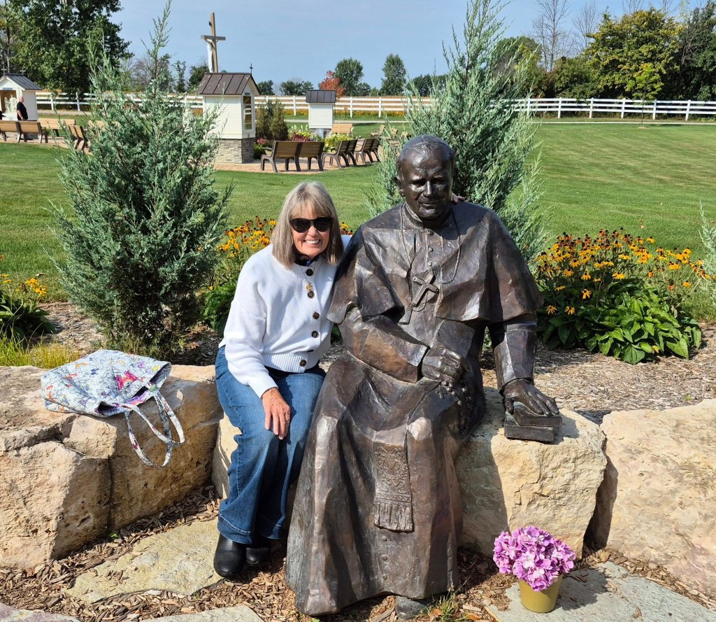 We are back on Interstate 80 heading west. Just over the Nebraska/Wyoming border is Pine Bluffs (1102 souls). Coming into town the Our Lady of Peace Shrine is very prominent with a statue of Mary standing 30 feet tall. Included in the complex with Mary are religious sculptures, and prayer areas. The Shrine hosts an annual pilgrimage.