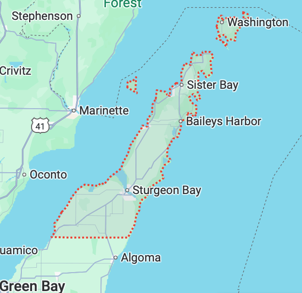 The dotted lines means Miss Smarty Pants found the state park but doen’t know how to get there. Notice we’d have to ford the lake…….
